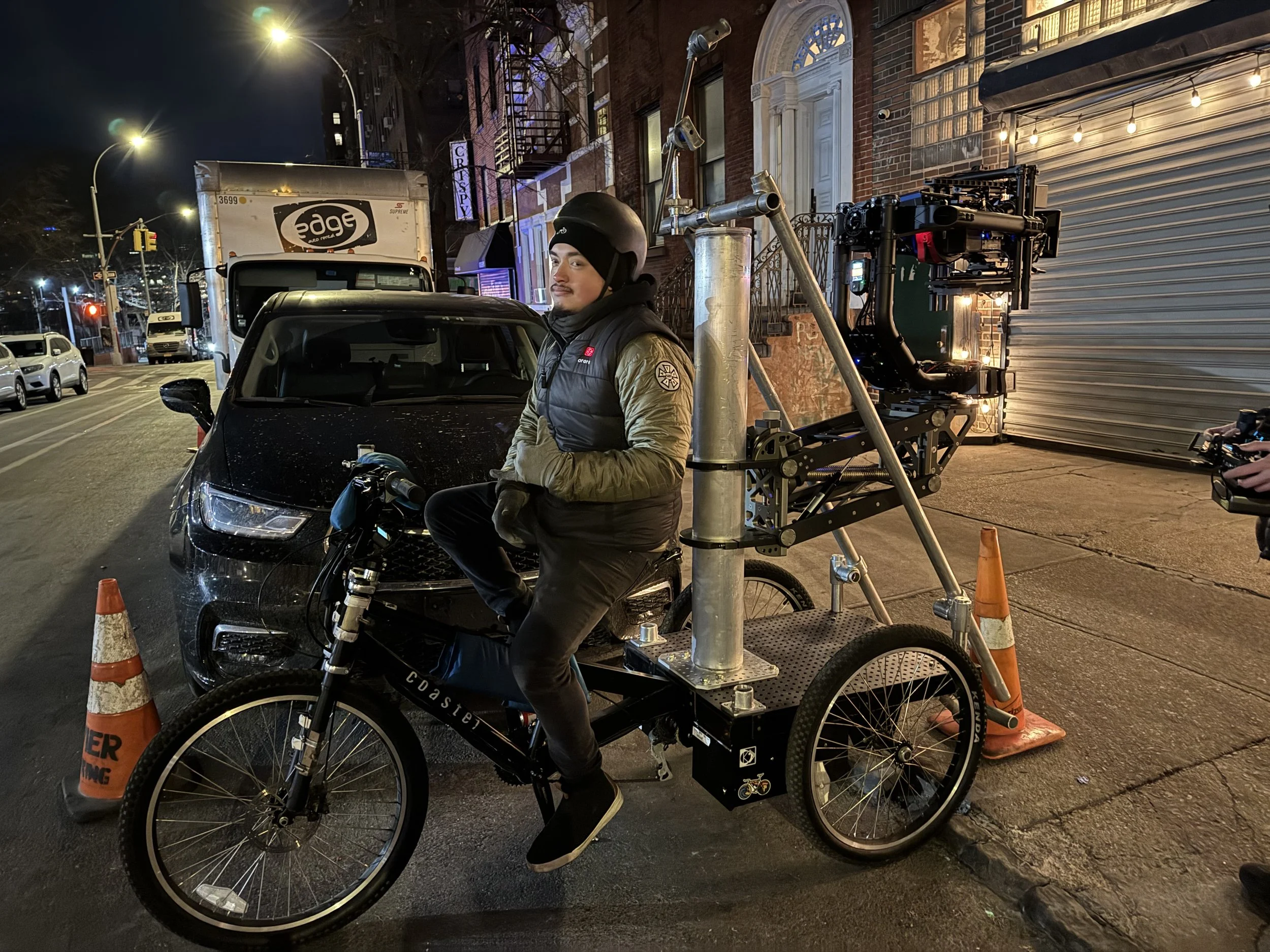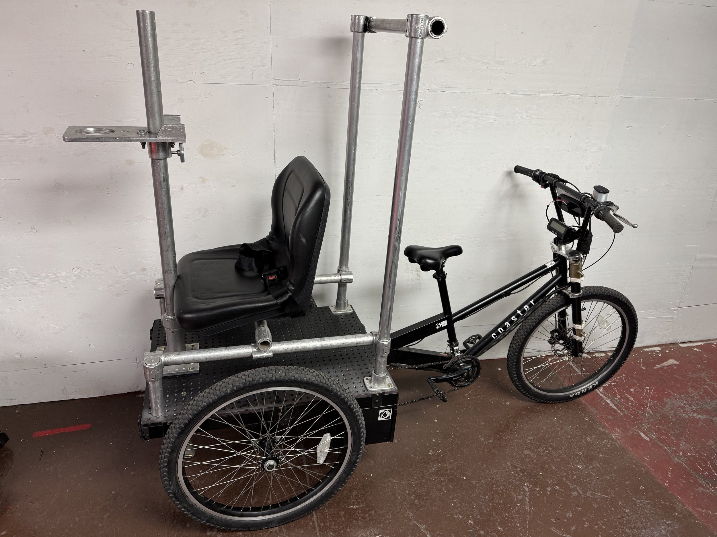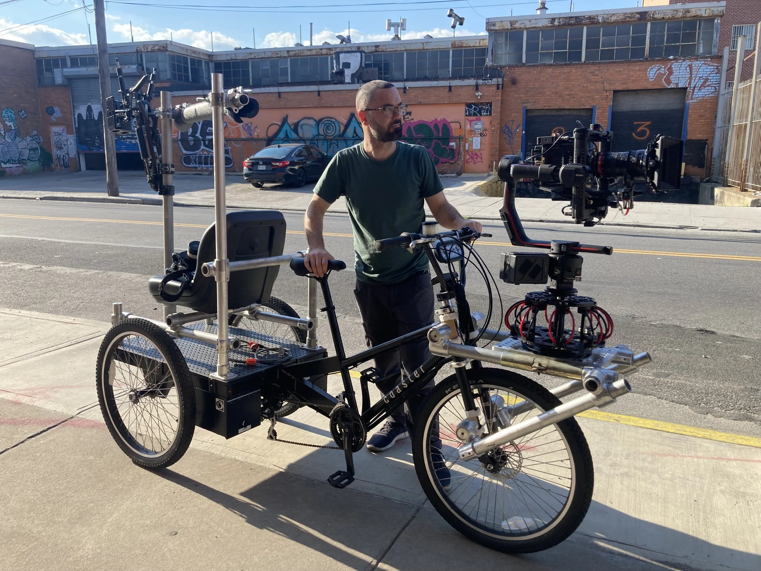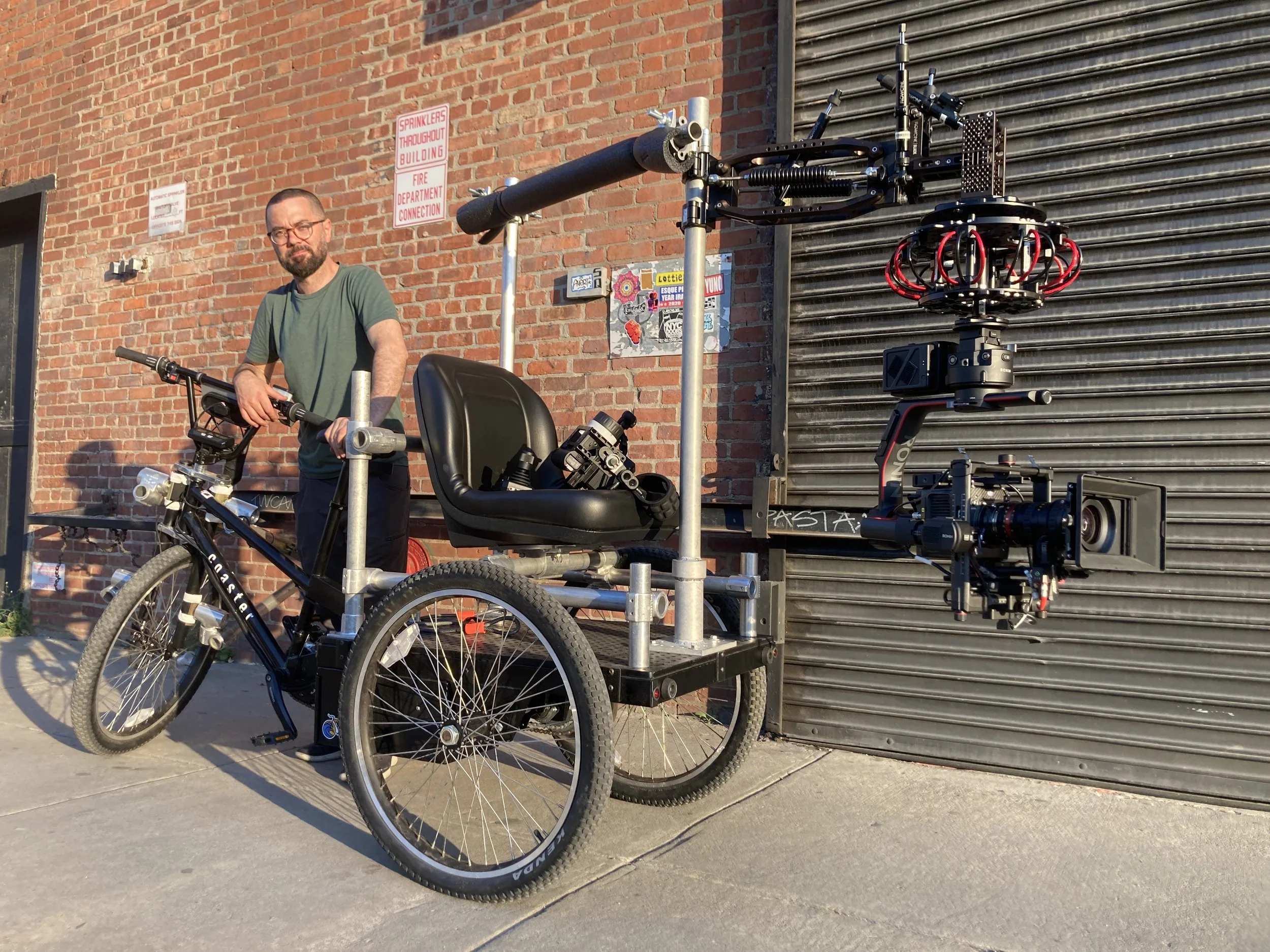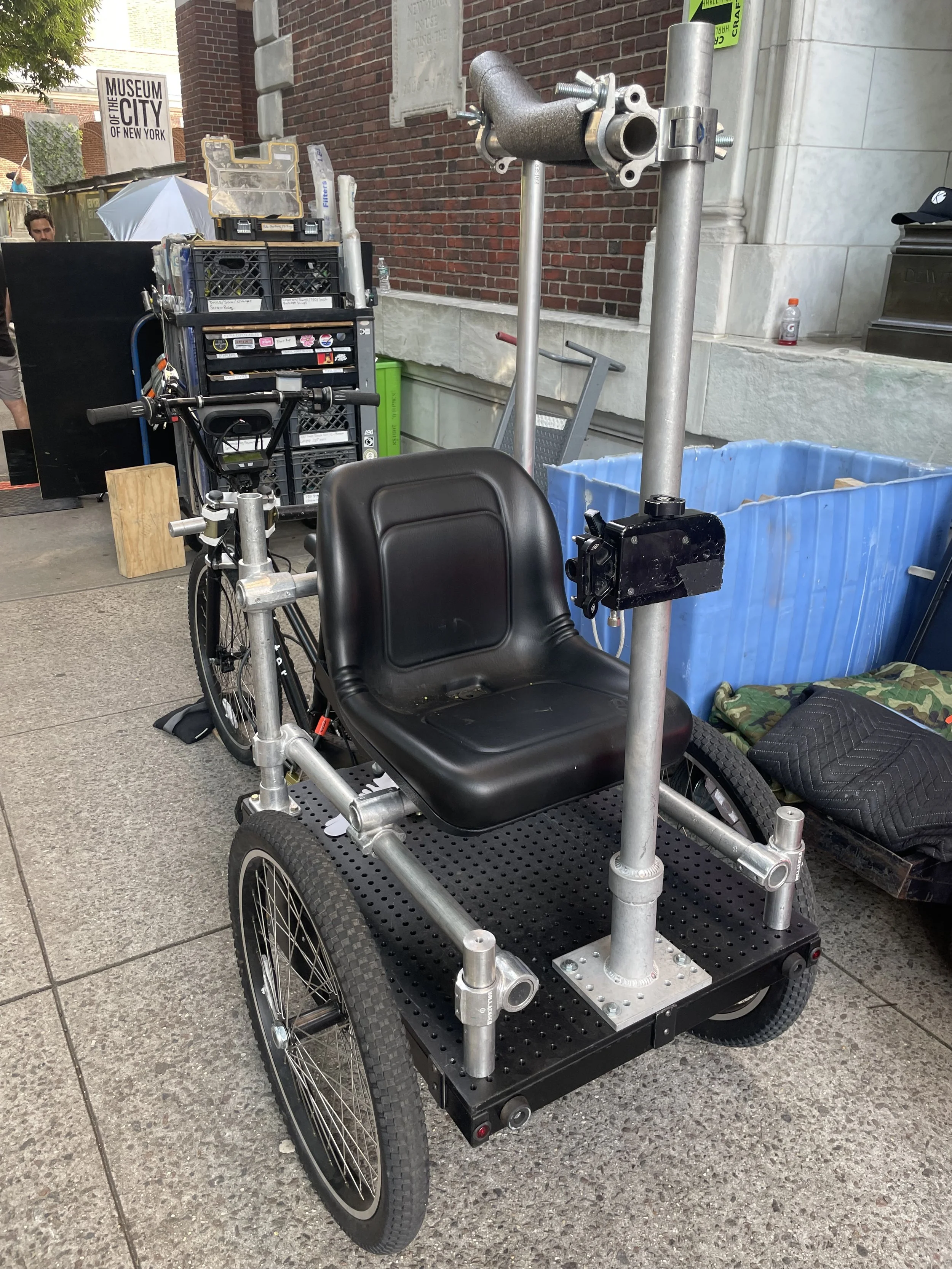The E-Trike is a versatile tool built for dynamic moving camera shots that need more strength than a manual rickshaw. Great for Trike to Bicycle moving shots, Trike to Jogger Moving shots, and much more.